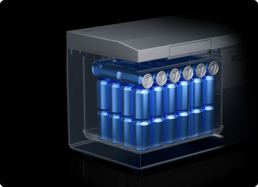 Frigiderul Glacier, creat pentru portabilitate absolută, poate funcționa cu o baterie detașabilă, fără cabluri încurcate sau restricționante. Datorită capacității mari a bateriei de 298 Wh, te poți bucura până la 40 de ore de acces facil la mâncăruri congelate, fructe proaspete și băuturi răcoritoare.